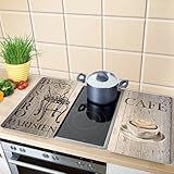 Erweitern Sie Ihre Arbeitsfläche mit diesen dekorativen Abdeckplatten, die zuverlässig Ihr Kochfeld schützen. Die kratzfeste und porenfreie Oberfläche verhindert das Einnisten von Bakterien und Gerüchen. Ob Ceran-, Elektro- oder Gasherd, die variablen, abnehmbaren Füße halten stets den nötigen Abstand. Robustes und schlagfestes Spezial-Glas. TÜV-geprüft. 2 x Länge 52, Breite 30 cm.