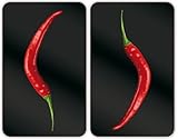 Scharfes Design und zusätzliche Funktionalität für den Glaskeramik-/Ceran-Herd bietet das zweier Glas-Abdeckplatten-Set Hot Peperoni. Die praktischen Glas-Abdeckplatten schützen den Herd zuverlässig.